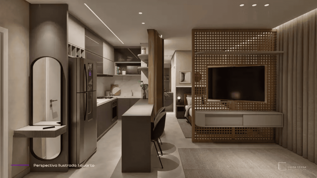 A infraestrutura do Alinea é atende tanto a valoriza o lazer, quanto quem precisa de praticidade: no rooftop você encontra piscina, espaço gourmet, salão de festas e pub, já no pilotis o prédio oferece coworking, lavanderia, academia, minimercado, salão de beleza, pet place e locker para delivery. A previsão de entrega é dezembro de 2028!
