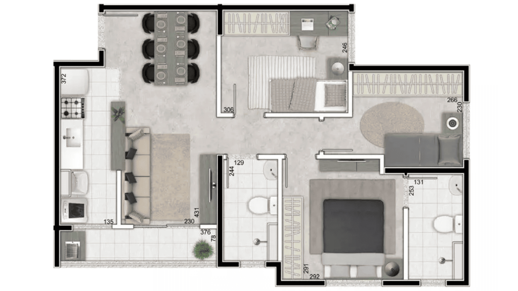 Esse apartamento na planta no Buritis é para você que valoriza alto padrão! A PHV tem tradição em construções de luxo e o projeto do Vista reflete isso: apartamentos de 3 quartos com suíte, sala para 2 ambientes com apoio gourmet, lavabo e cozinha americana integrada. Para quem está buscando mais espaço do que o usual, vai gostar de saber que o Vista oferece uma das maiores plantas da região. O apartamento tipo tem 97m²!